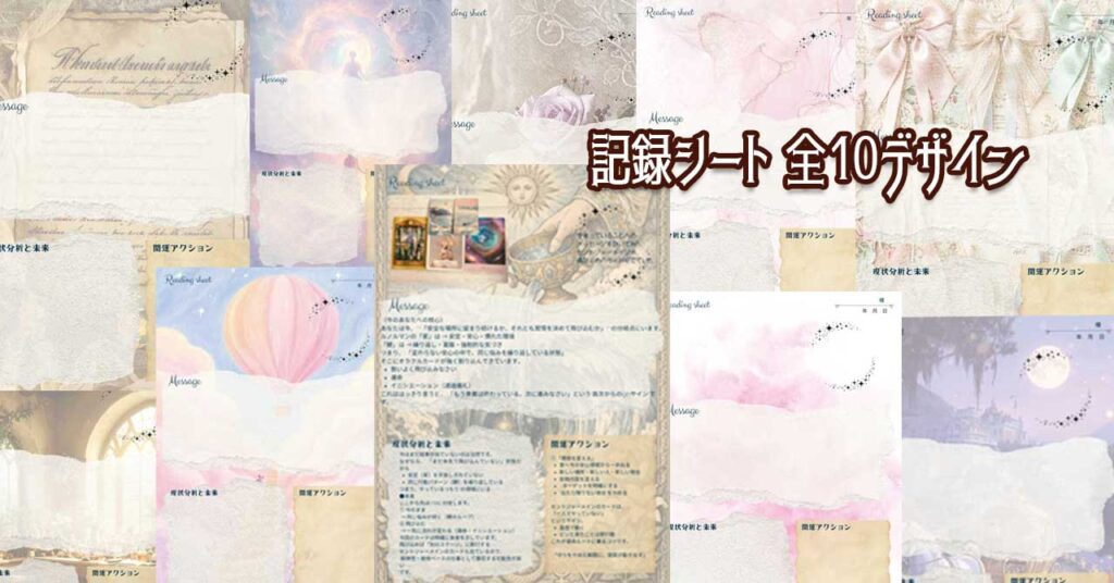 カードを引いて項目を埋めるだけで、自然にリーディングが完成する実践フォーマットです。